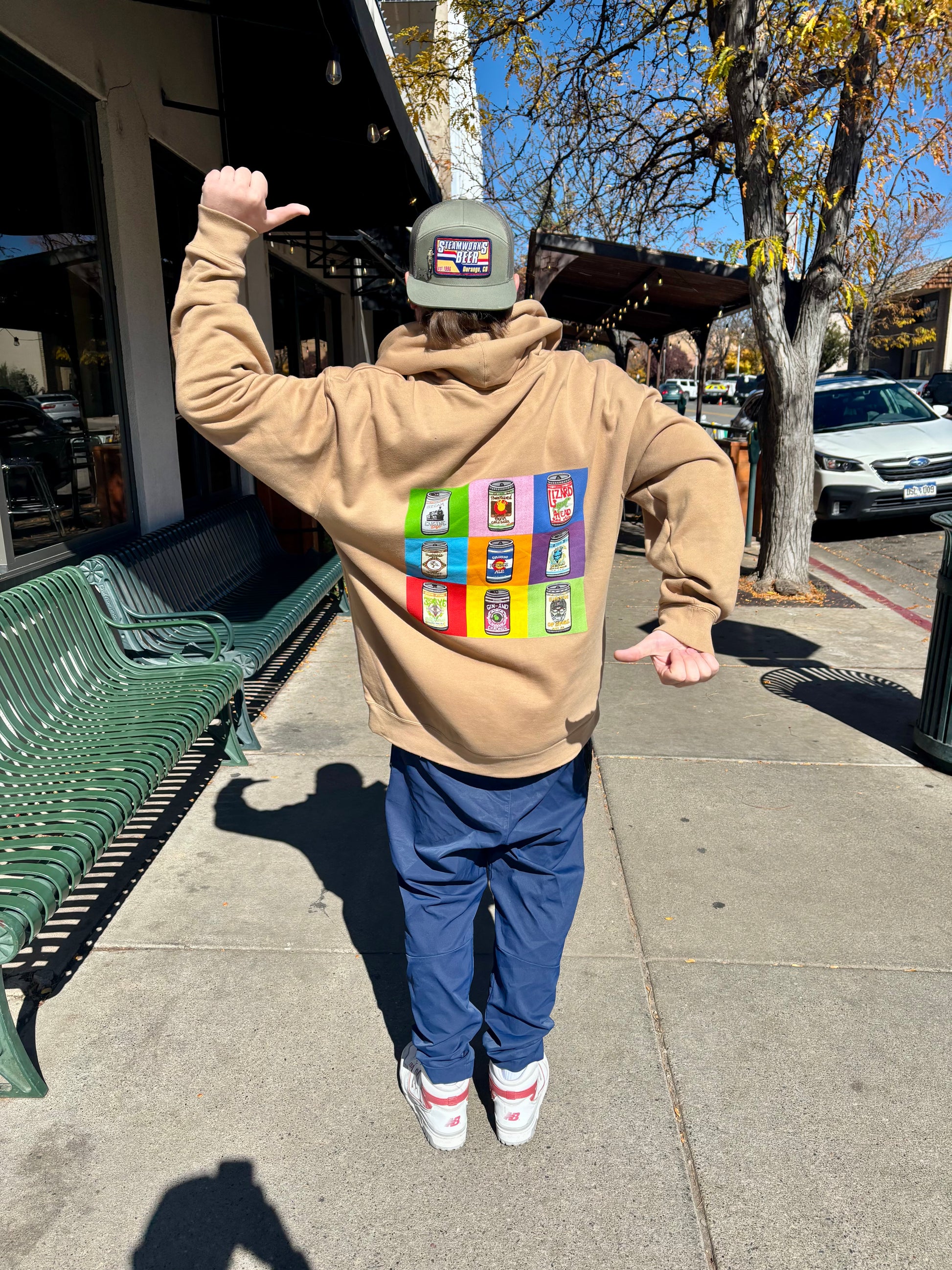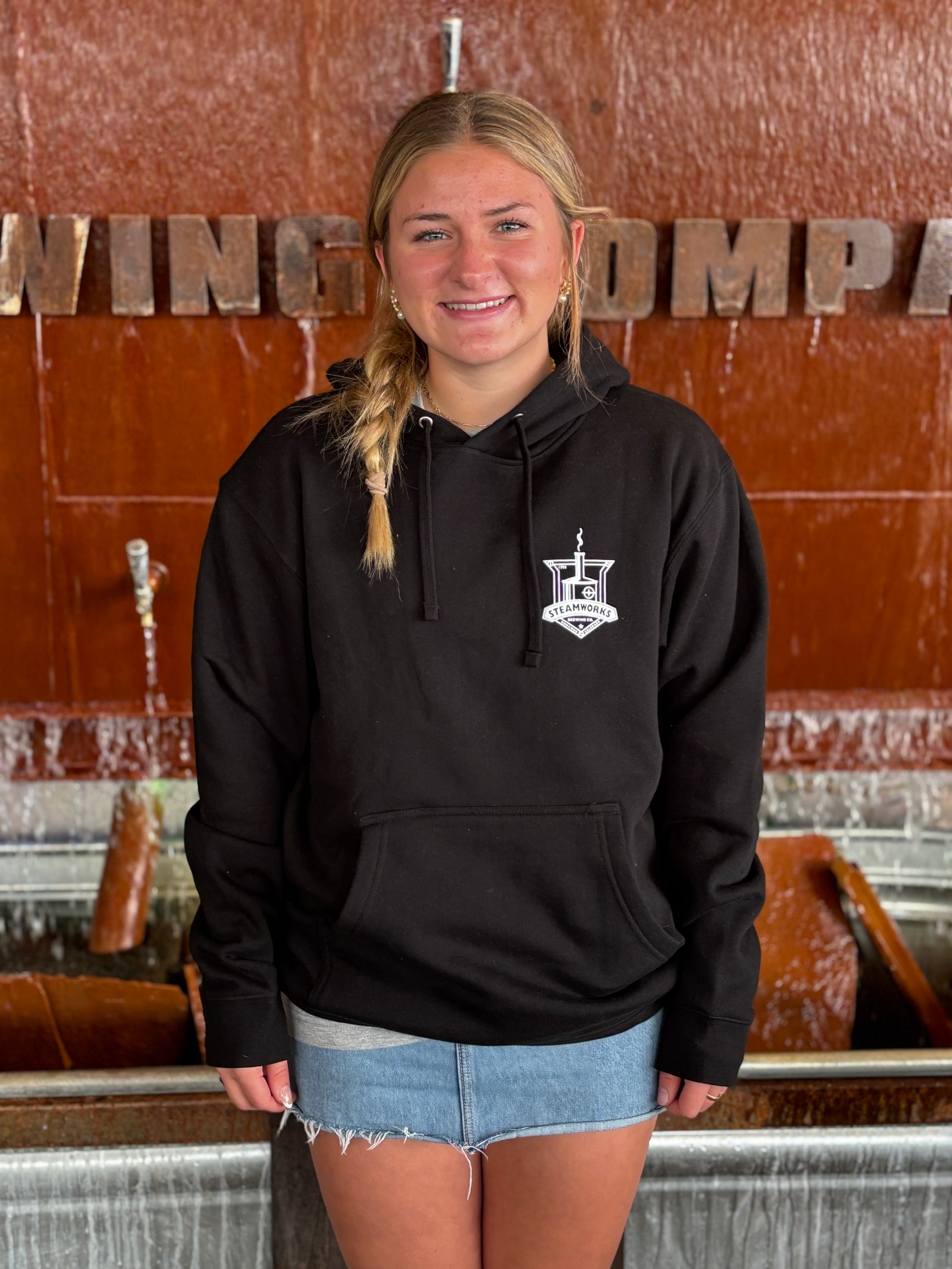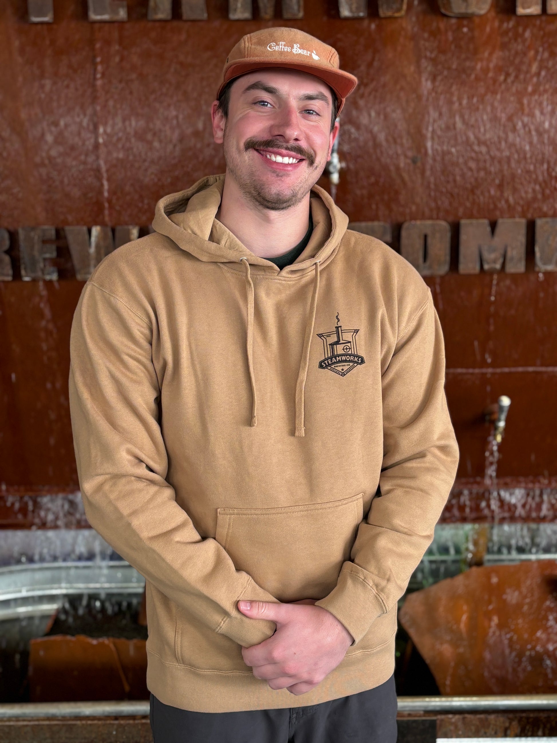 Art designed by our very own Marin Farley, this cozy hoodie features the lineup of Steamworks beers you’ll find in cans. A soft, heavyweight layer made for mountain evenings, brewery hangs, and repping your local favorite. Available in three colors — black, heather grey and tan.